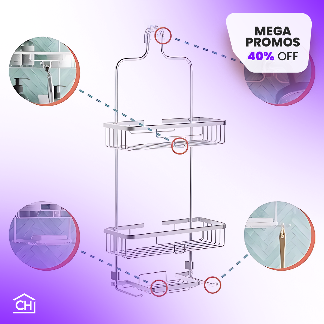 El AluShower Organizer maximiza tu área de baño, proporcionando almacenamiento vertical para aprovechar cada rincón. Con fácil instalación y sin necesidad de herramientas, mantén todo a la mano sin complicaciones.