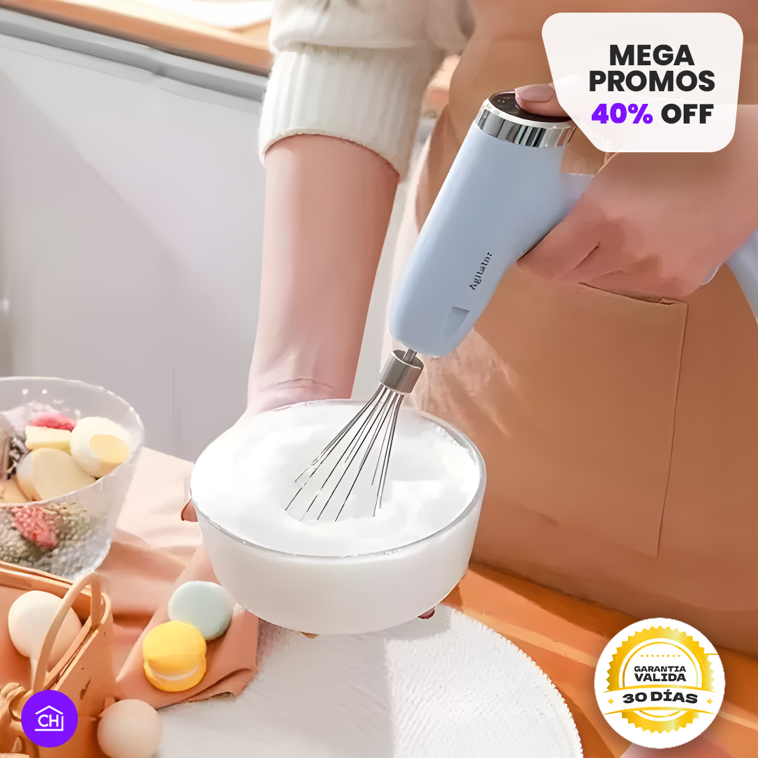 Este batidor inalámbrico te ofrece total libertad de movimiento. Úsalo en cualquier parte de tu cocina sin preocuparte por enchufes o cables. Además, su batería recargable por USB asegura que siempre esté listo cuando lo necesites.