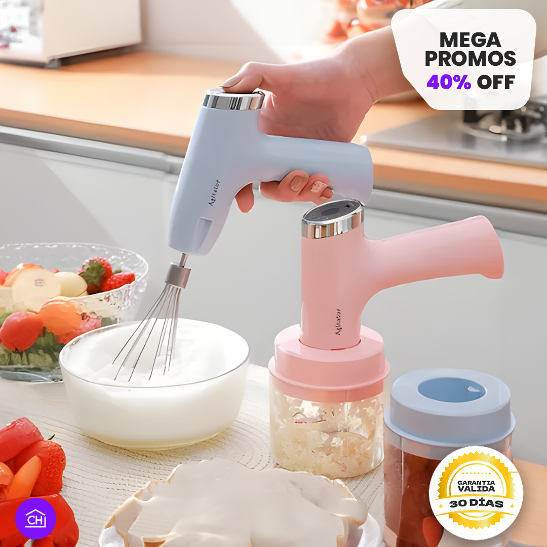 - 💡 2 en 1: Batidor y picador en un solo dispositivo, ahorra espacio y tiempo.