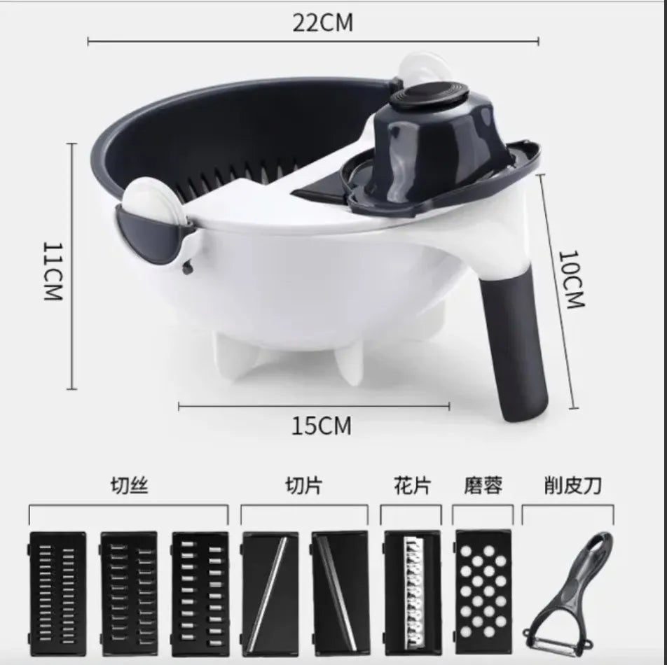 podrás pelar rallar tus frutas y verduras, trae 5 cuchillas intercambiables,un pelador de verduras y un sujetador
