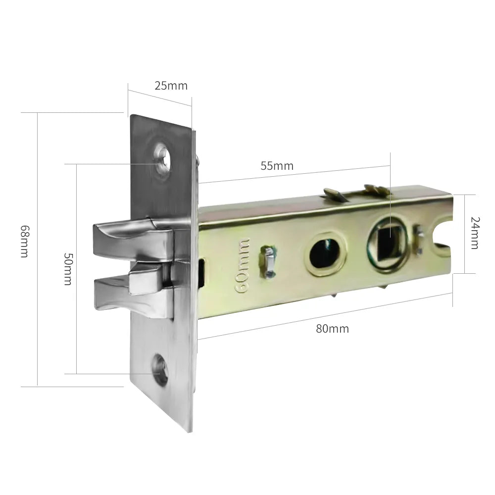 Cerradura versátil: cumple con los estándares de la mayoría de las cerraduras de palanca, equipadas con una bolsa de tornillos y un pestillo (60 mm), puede fijarla en su puerta cuyo grosor es de 35-55 mm.