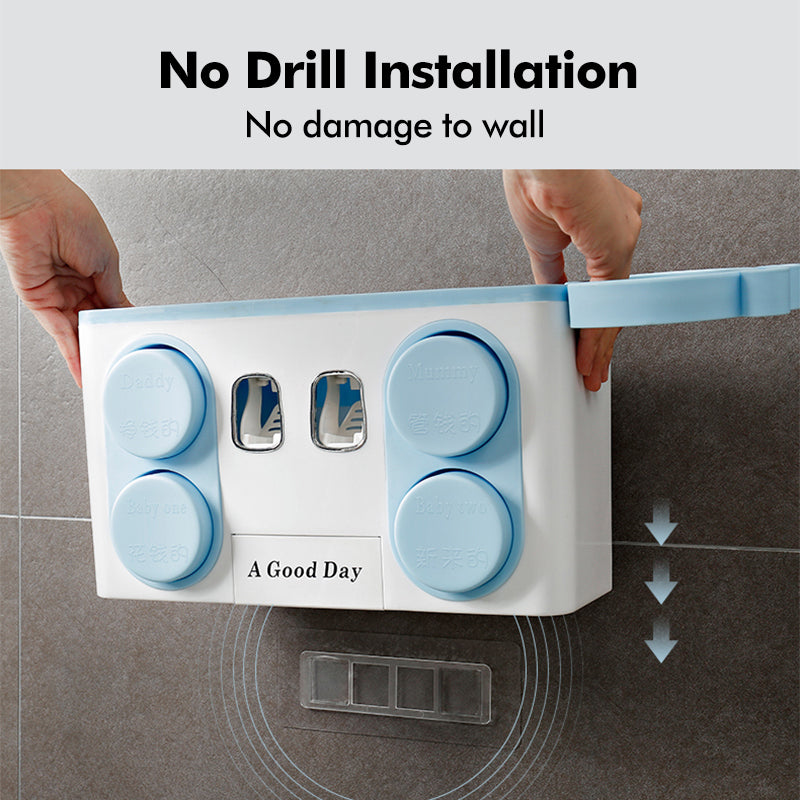 Aquí te tenemos la solución un dispensador multifuncional, fácil de usar, exprime hasta la última gota de pasta dental del tubo, almacena los cepillos de dientes ordenados, súper higiénicos pues los mantiene secos y limpios, y además contiene tazas para el enjuague bucal.