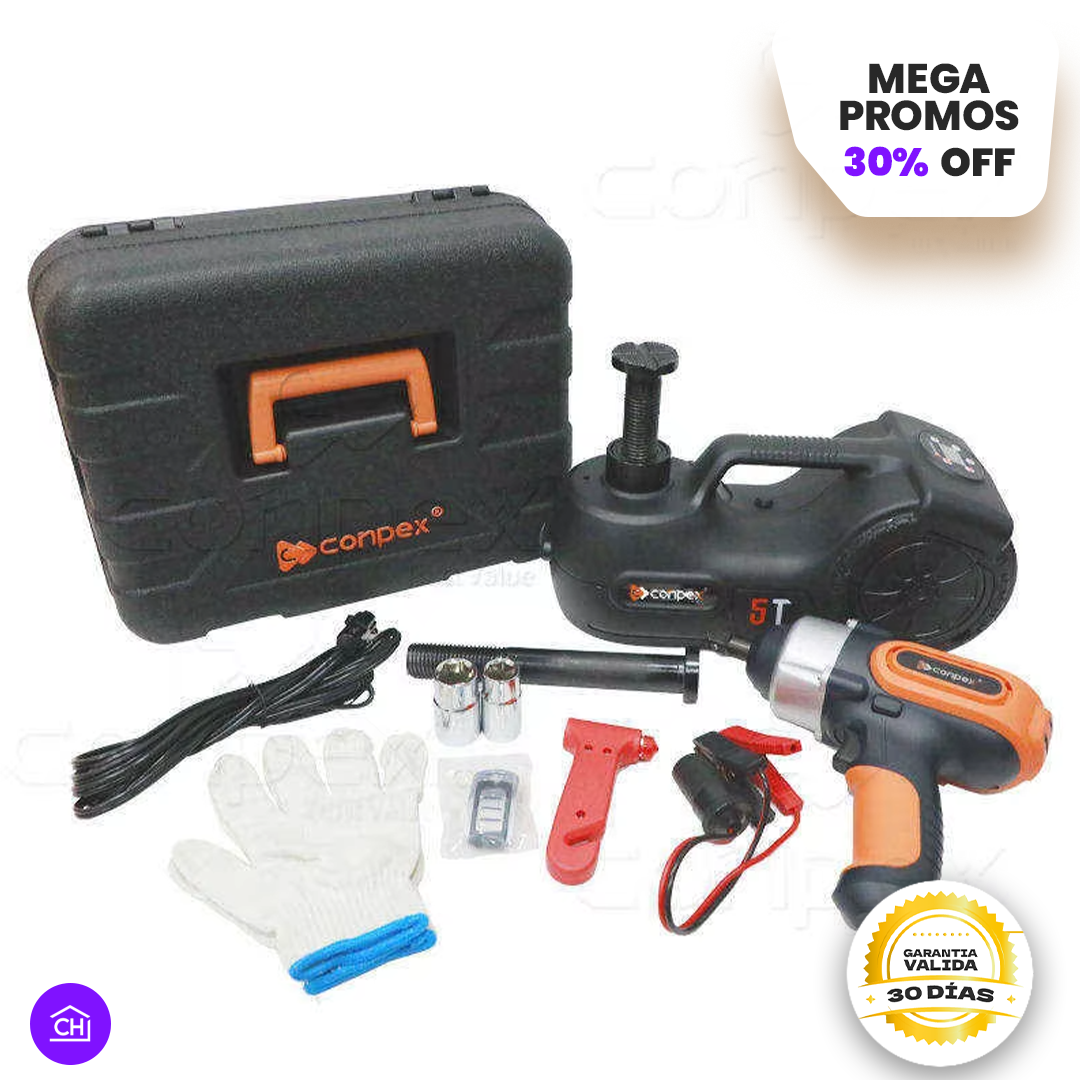 Nuestro CONPEX Kit de gato eléctrico de 5 toneladas es la solución que necesitas. En solo dos minutos, este gato puede elevar fácilmente tu auto, SUV o camioneta hasta 45 centímetros. Alimentado por el encendedor de cigarrillos o la batería del vehículo, este dispositivo robusto y eficiente transforma una tarea ardua en un proceso rápido y sencillo.