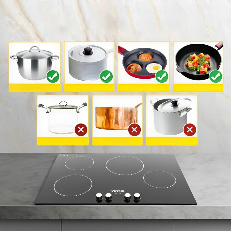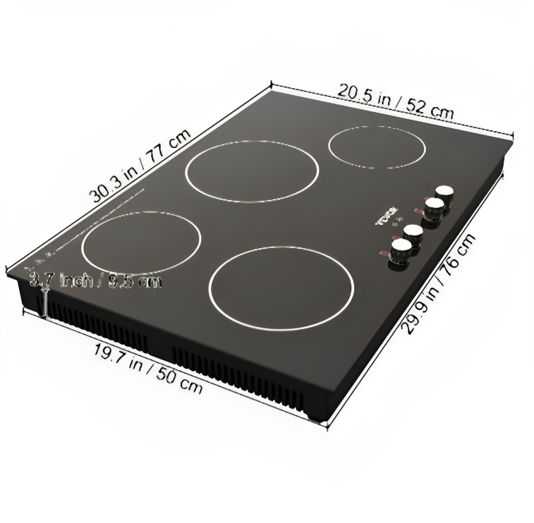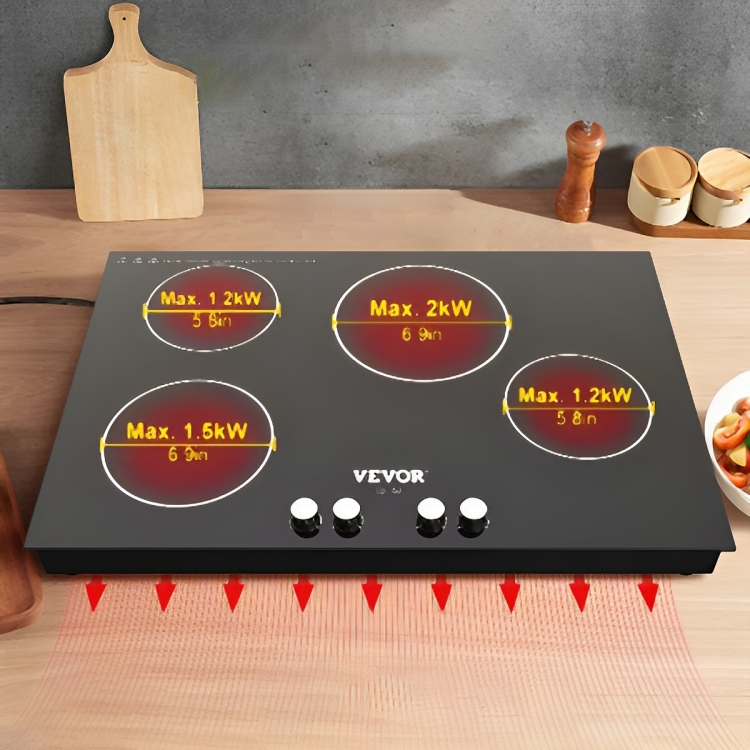 Nuestra placa de inducción adopta 4 quemadores con gran potencia, que ofrecen un calentamiento rápido y estable. Está equipado con controles giratorios con 9 niveles de calefacción, una función de refuerzo y un temporizador. Mientras tanto, existen varias medidas de seguridad, incluido bloqueo para niños, protección contra sobrecalentamiento, apagado automático y un indicador de calor residual.