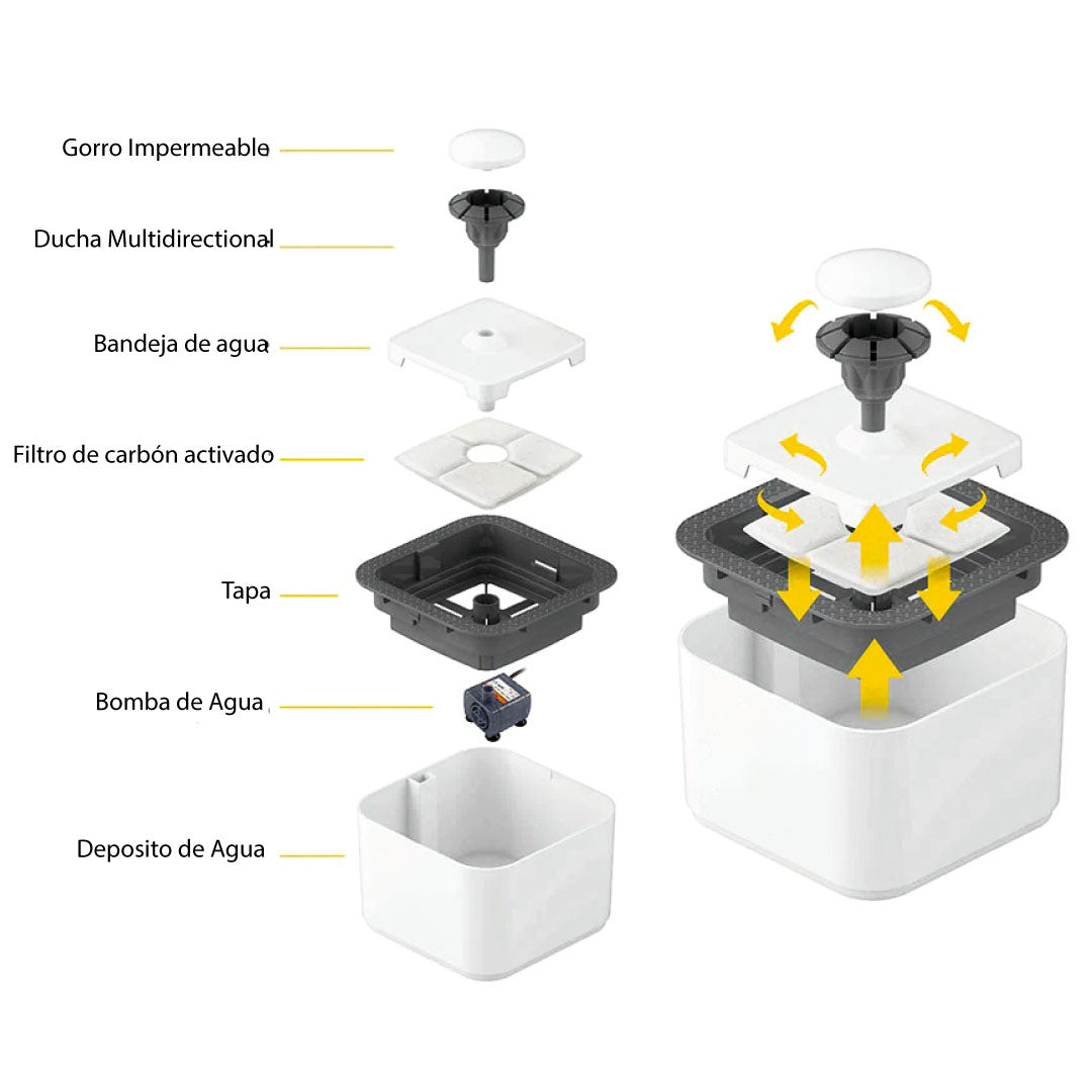 Esta fuente de agua es un bebedero especial y muy saludable para tus mascotas ya que cuenta con filtros que permiten que tus gatos o perros beban agua completamente limpia, totalmente diferente a lo que sucede con los recipientes tradicionales, en los cuales el agua queda reposada propensa a cualquier tipo de gérmenes.