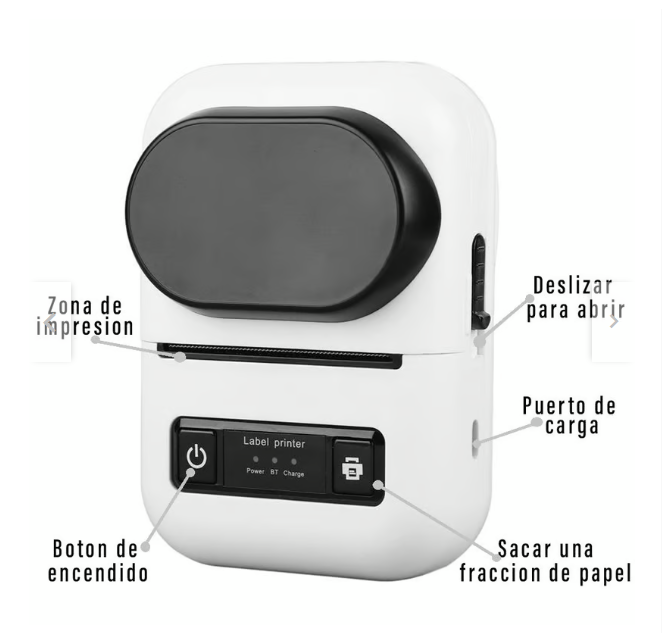 • La impresora va con un rollo de etiquetas, las medidas son 50 mm x 30 mm (5 cm x 3 cm), en color blanco.