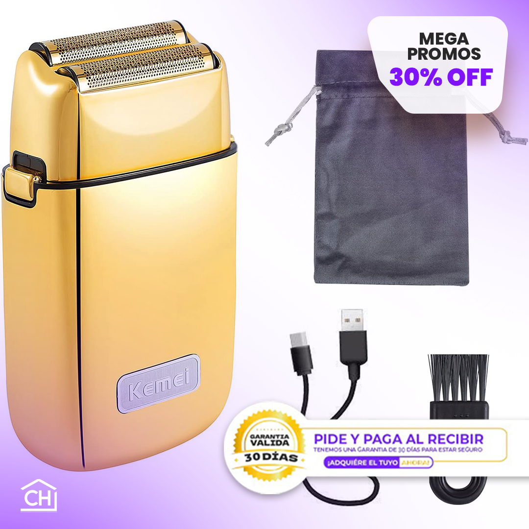 La afeitadora KEMEI TX Pro de tres láminas se adapta a los contornos de tu cara para un afeitado cómodo y sin esfuerzo. Su diseño profesional y ergonómico asegura un manejo sencillo y un control total, eliminando las irritaciones y cortes.