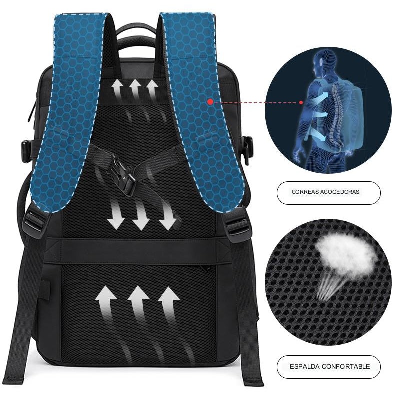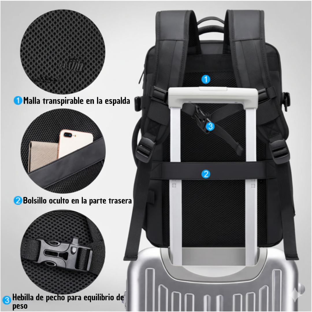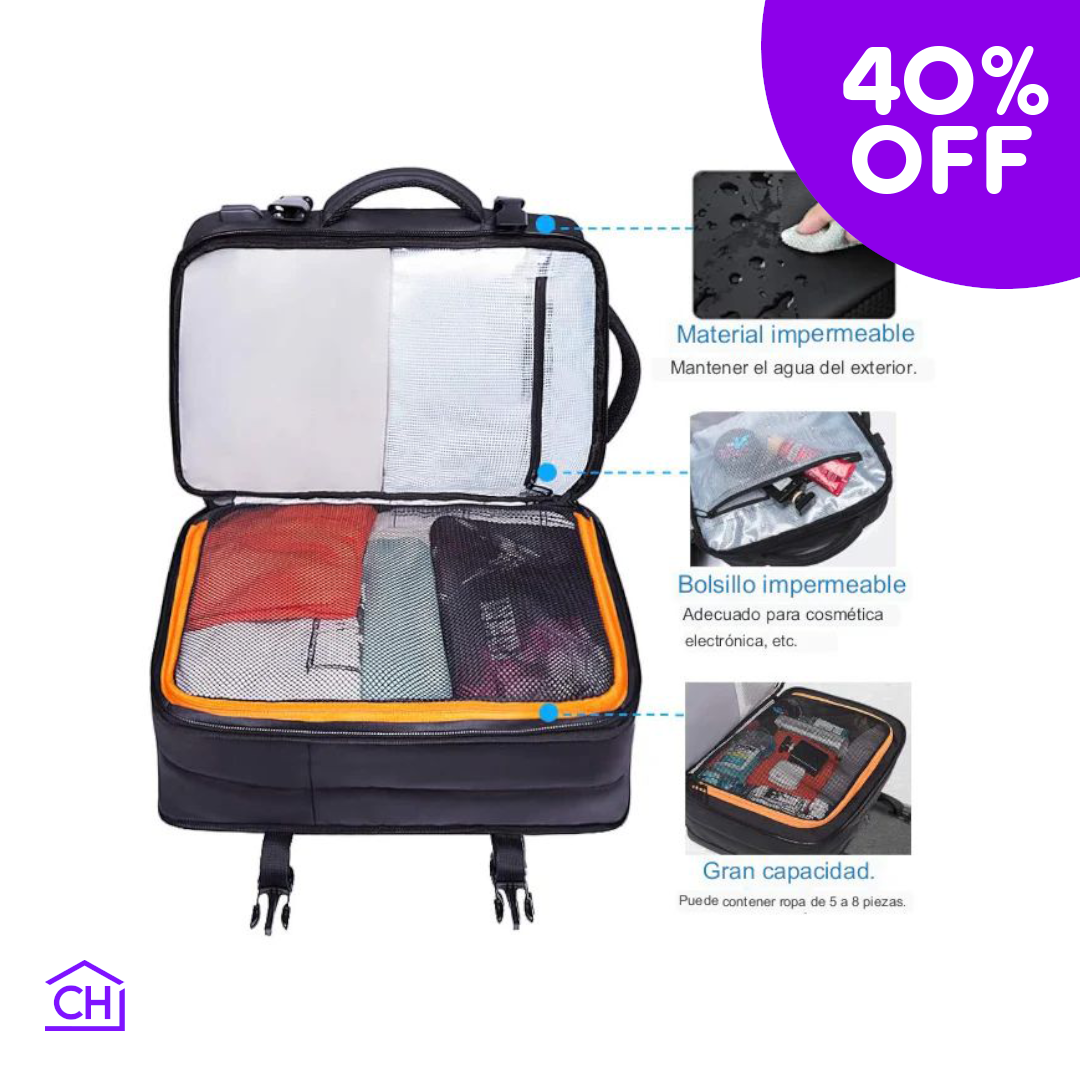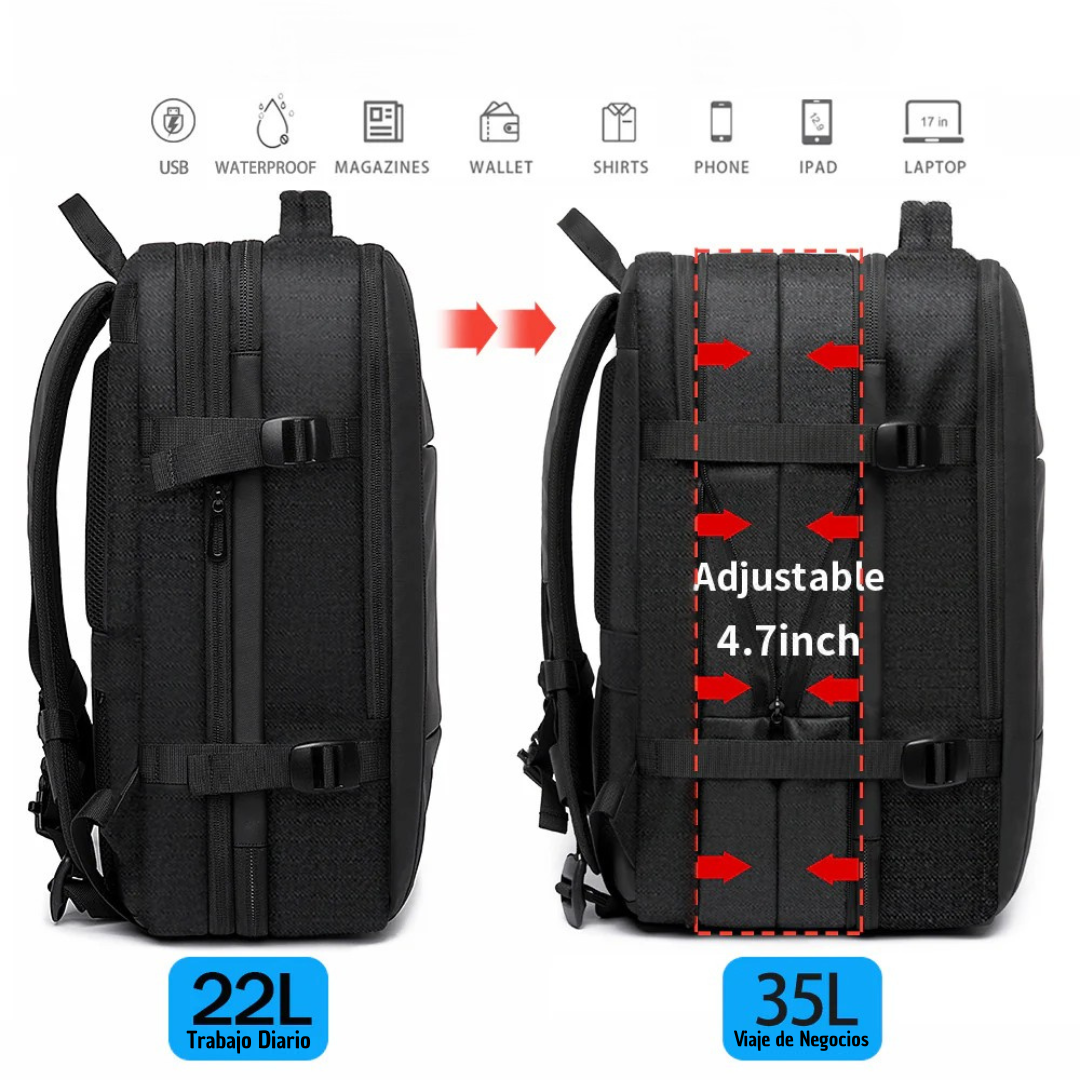 Expande su capacidad en segundos y transforma tu mochila en una maleta lista para cualquier destino.