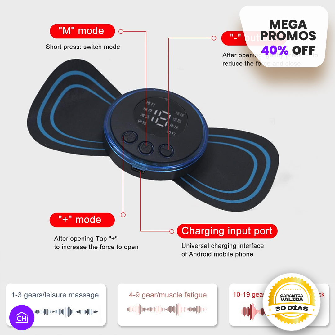MASAJEADOR ELÉCTRICO EMS + PARCHES GRATIS