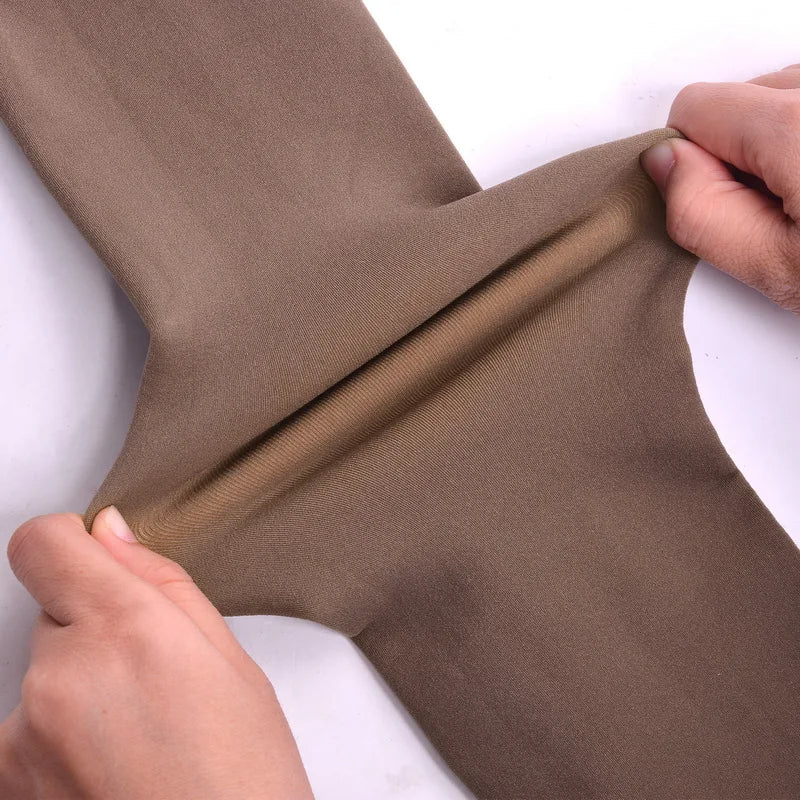 Material suave: estas medias translúcidas falsas están hechas de algodón, elastano, poliéster y forro polar, material suave y elástico, cómodo de llevar.