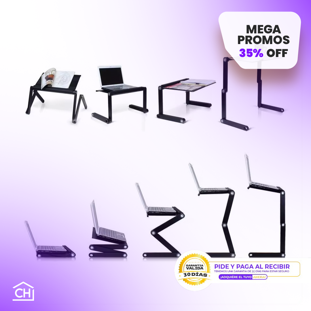 - Uso: Escritorio Lap, Elevador de portátil, Soporte de lectura.