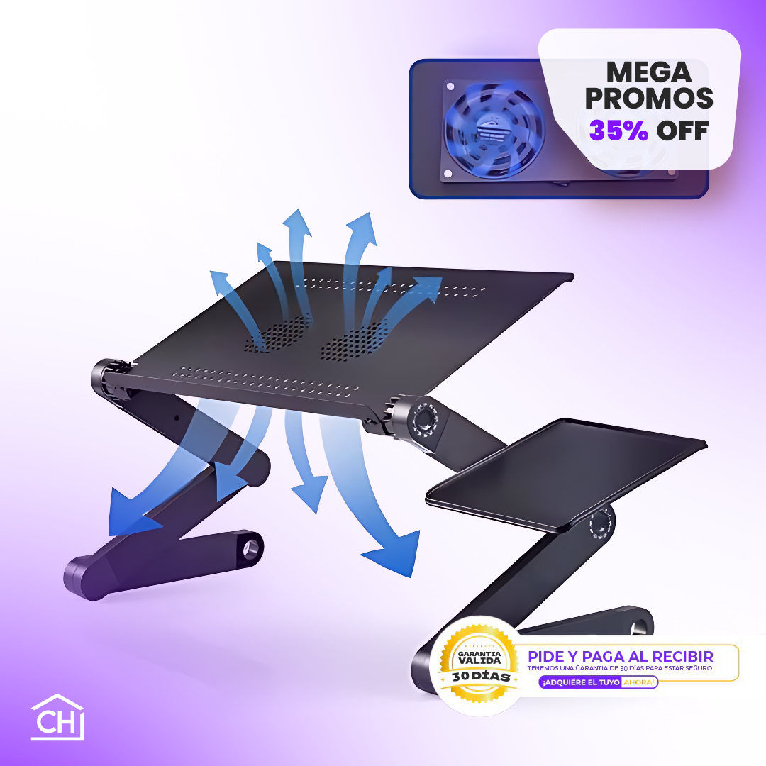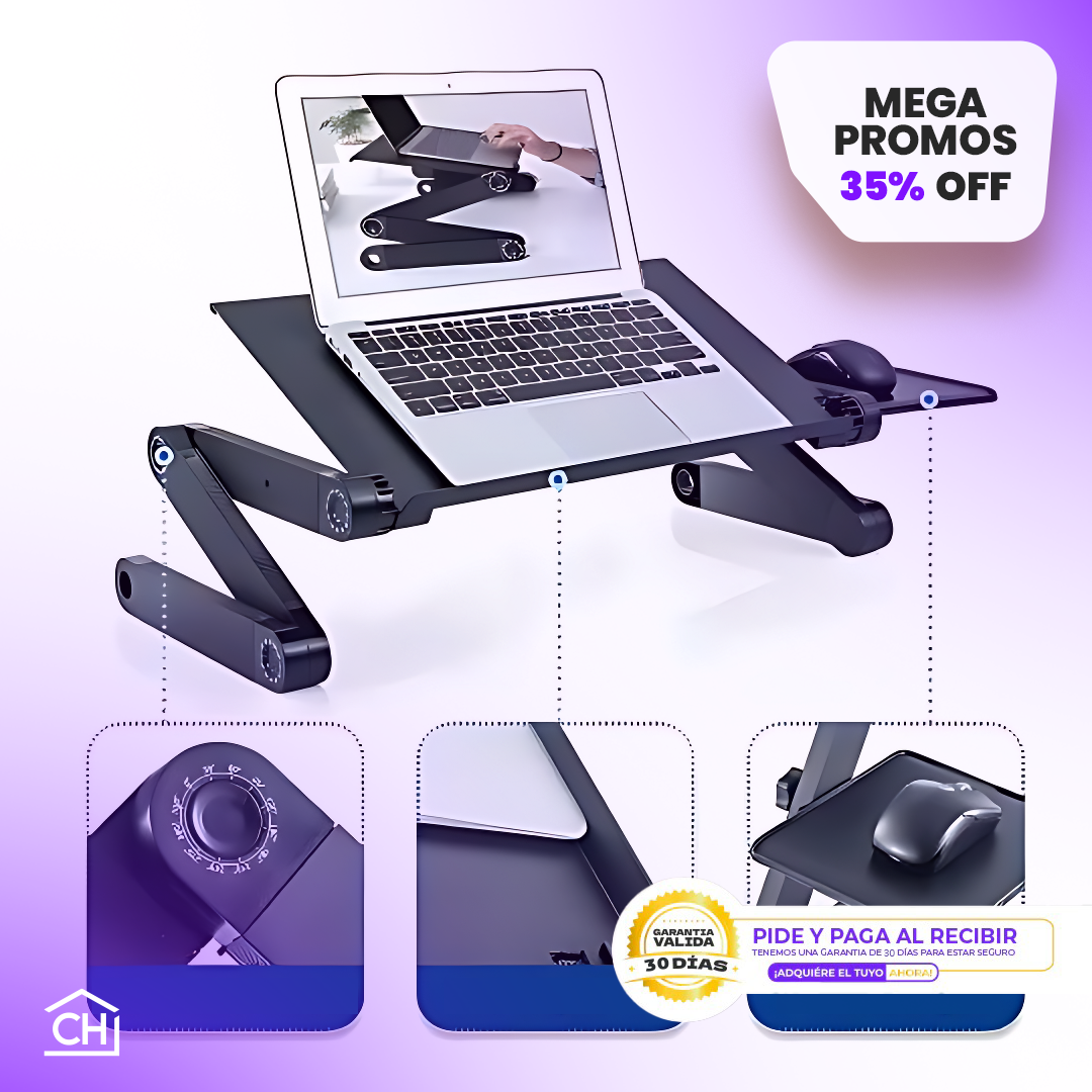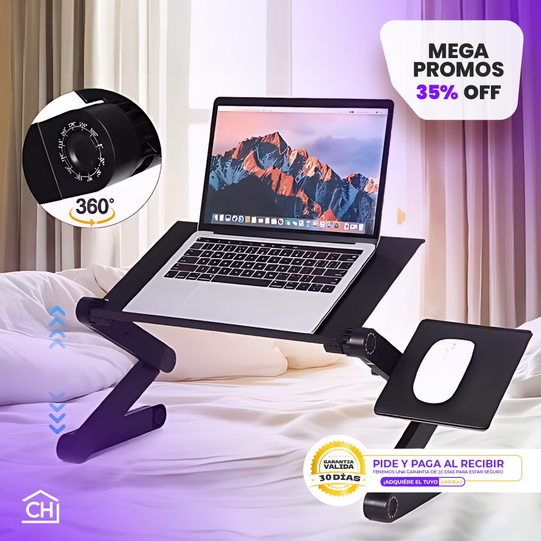 Este soporte de escritorio ajustable para ordenador portátil está diseñado para brindarte una experiencia ergonómica, ya sea en tu cama, sofá o escritorio. Con su estructura de aluminio de alta calidad y funciones ajustables.