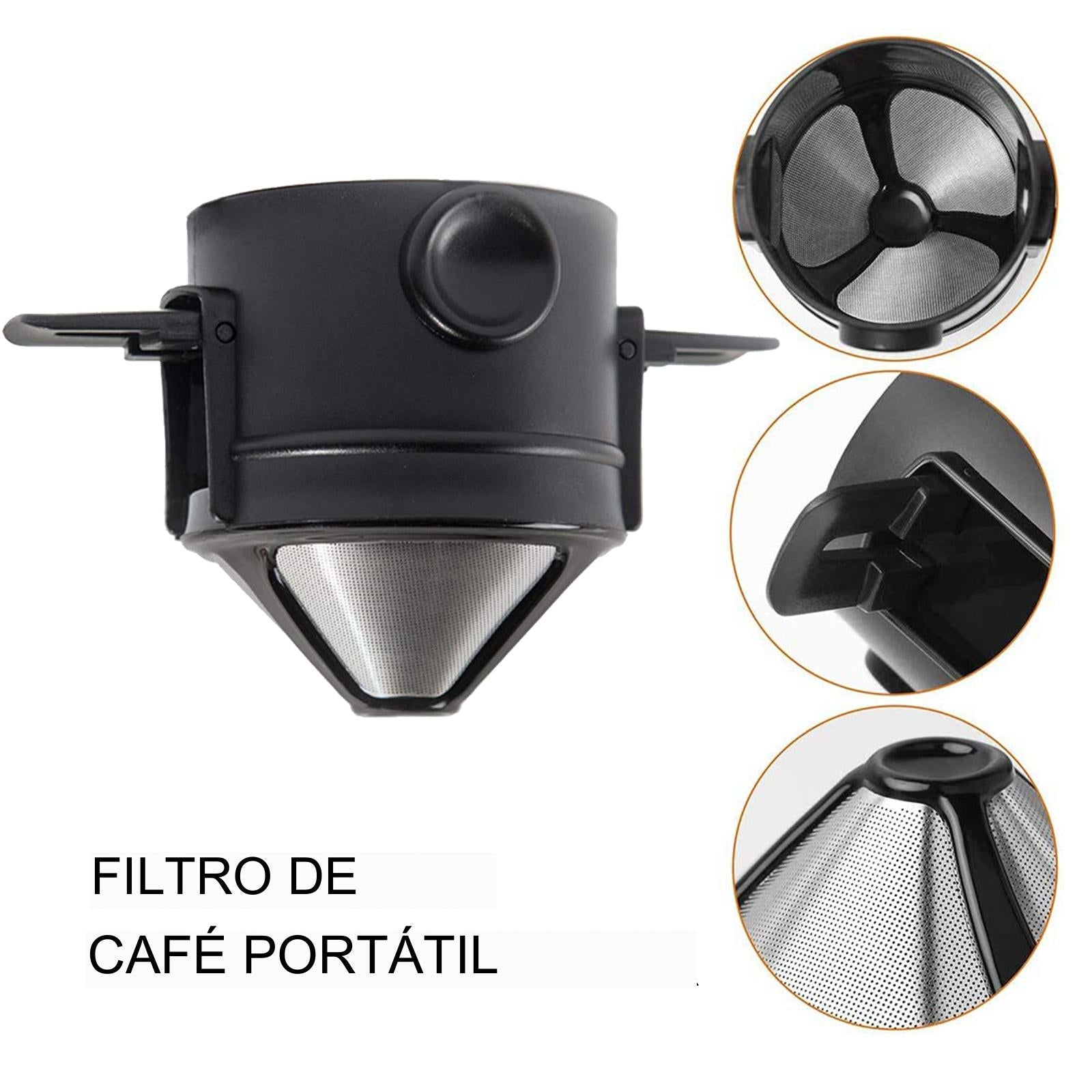 El mini colador de café es el artículo perfecto para disfrutar del Café recién colado en cualquier lugar, sin necesidad de papel de filtro. Cuenta con solapas retráctiles, lo que permite encajar en tazas de varios tipos. Al no utilizar papel filtro, mantiene el sabor original del café.