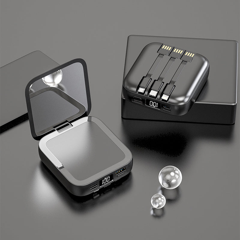 Nuestro hermoso PowerBank tiene en un solo lugar 3 cargadores y además un lindo espejo que siempre necesitarás.