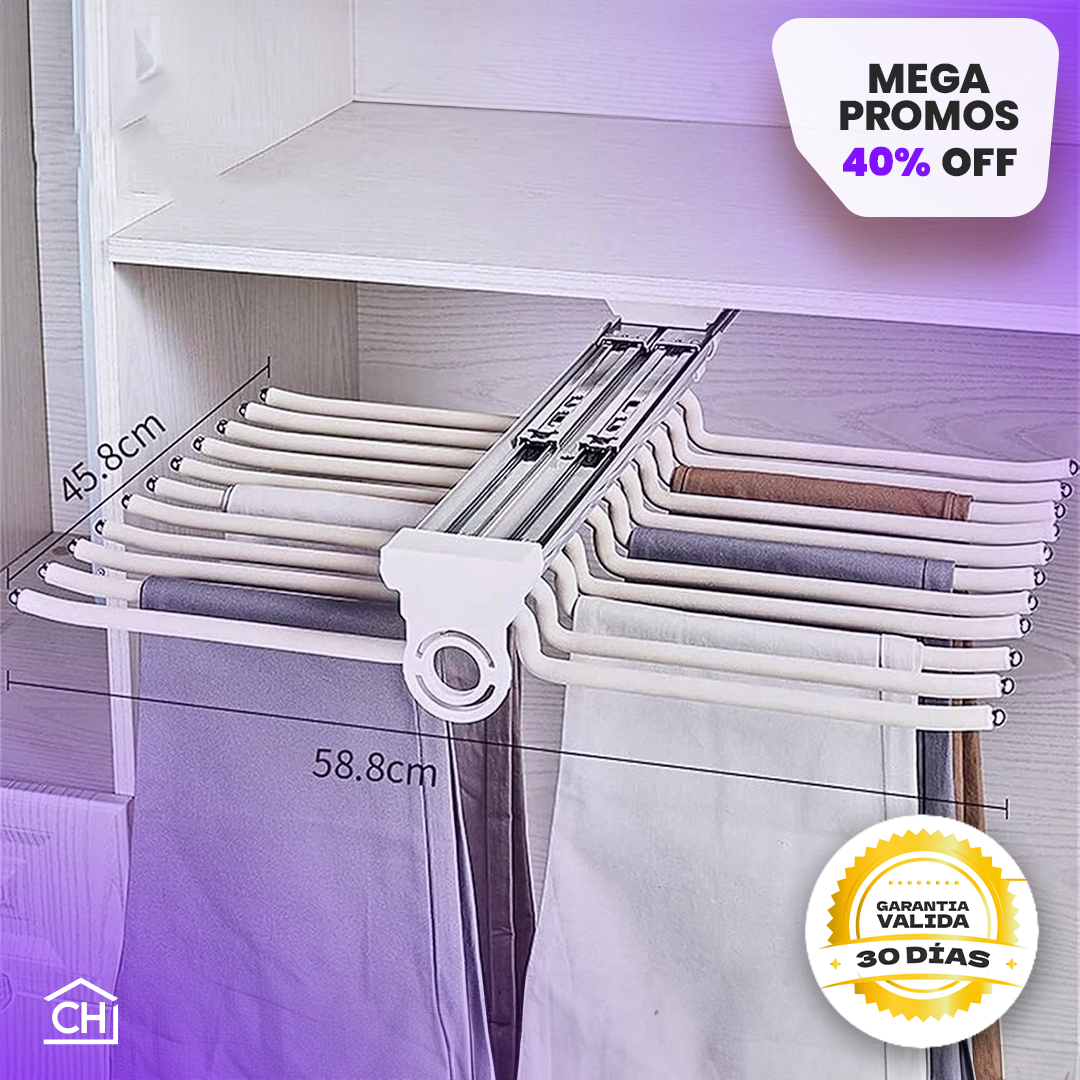 Con el Perchero Retráctil para Pantalones, podrás maximizar cada centímetro de tu armario. Su diseño deslizante y su construcción robusta te garantizan una organización impecable, reduciendo el desorden y mejorando la estética general de tu espacio.
