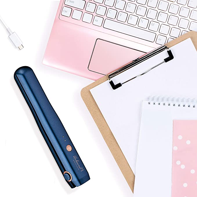 Esta plancha alisadora de alto rendimiento es recargable (se carga por completo durante la noche antes del primer uso) y ofrece hasta 20 minutos de funcionamiento sin cable