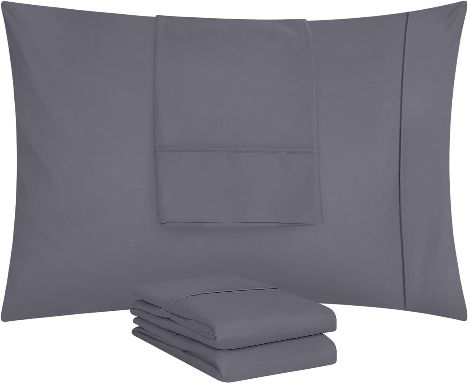 Juego de sábanas semidobles 120x190 +35 cm de fuelle + 2 fundas microfibra 100% poliéster 800 hilos solo tono supersoft.