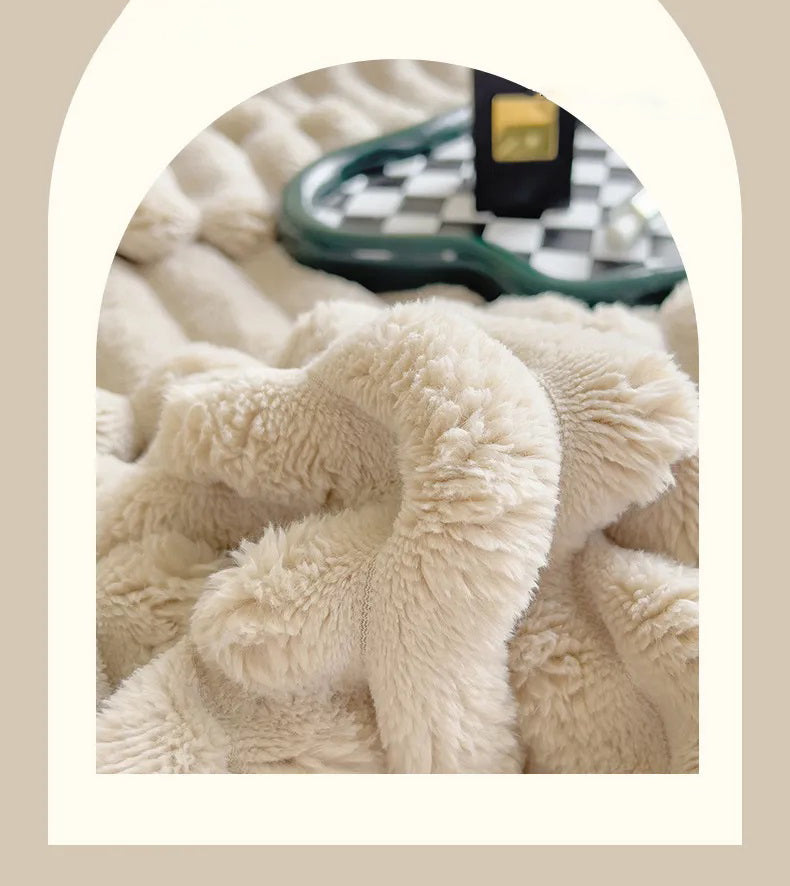 "Estaba buscando algo más que una simple manta, y la encontré con esta maravilla. La felpa de conejo es increíblemente suave, y la durabilidad me ha sorprendido. Definitivamente, ¡es una inversión en comodidad!"