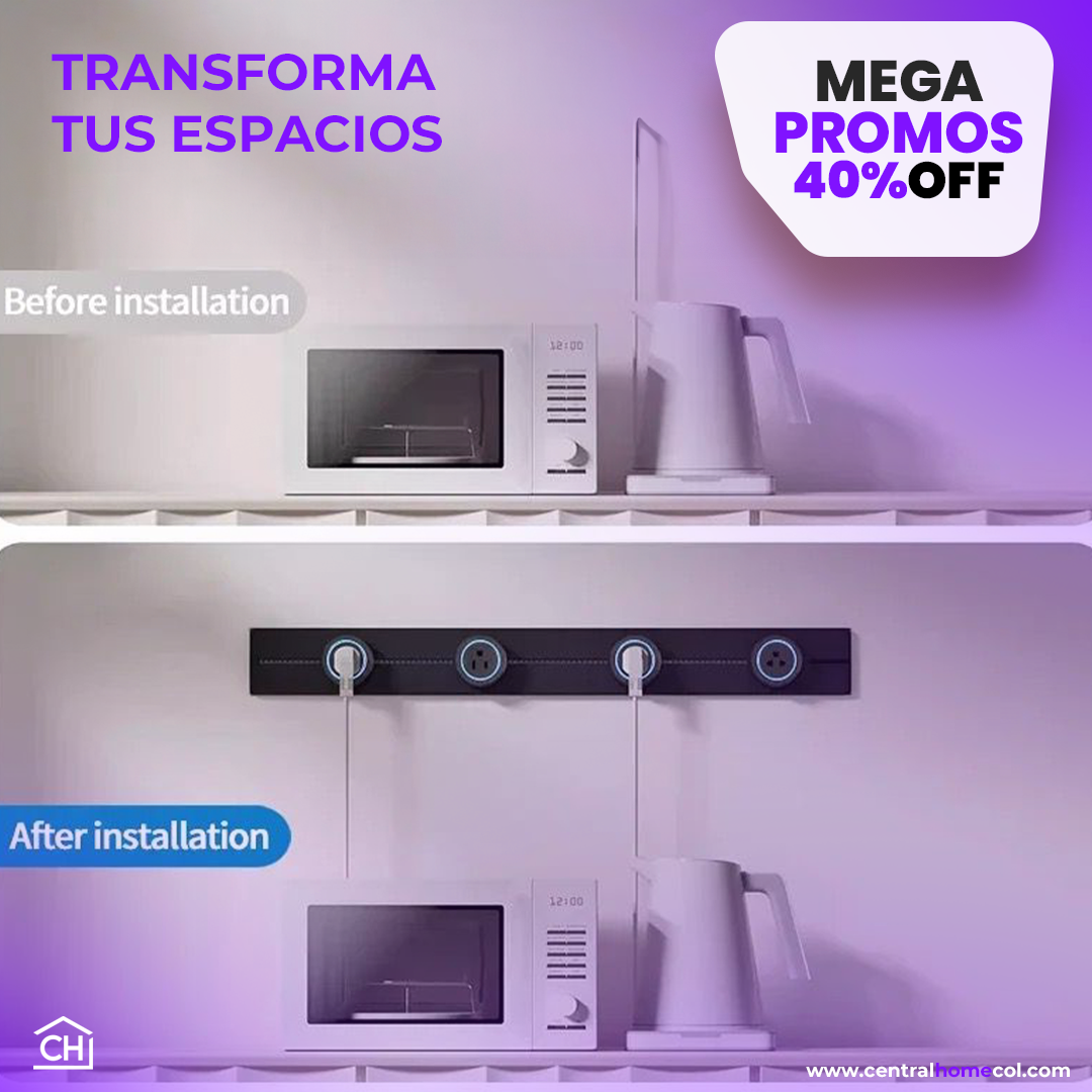 - 🔌 Versatilidad Total: Mueve el enchufe a lo largo del riel de 40cm o 50cm según tus necesidades.