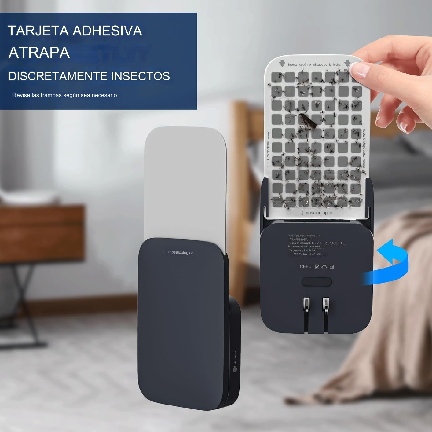 Eficacia Comprobada: La potente luz UV atrae a los insectos, quedando atrapados en la parte trasera, de manera discreta y eficaz.