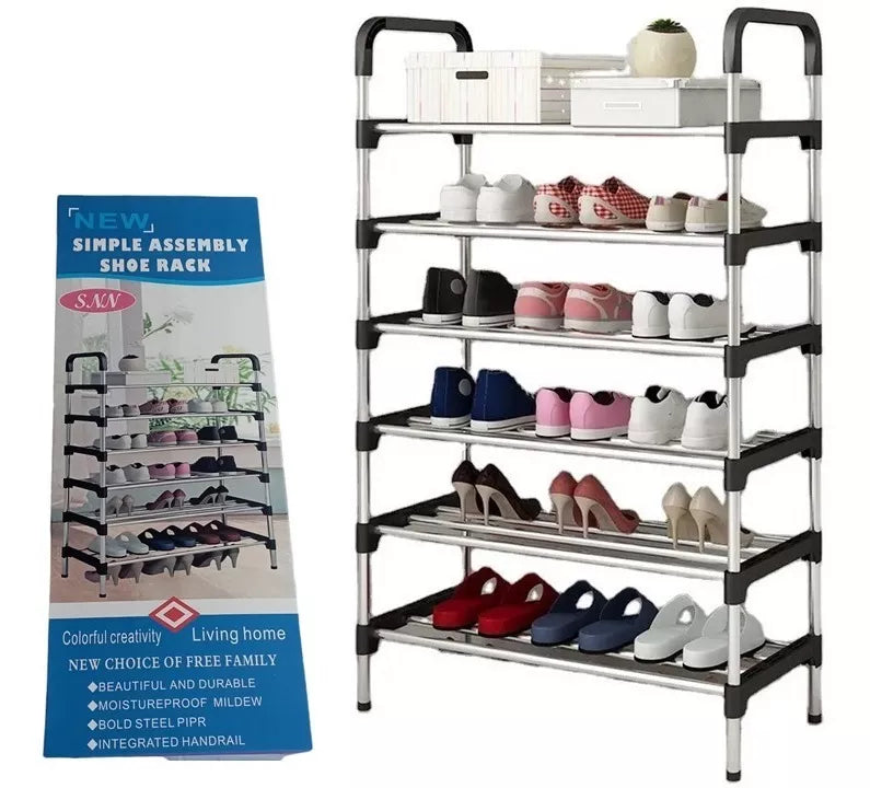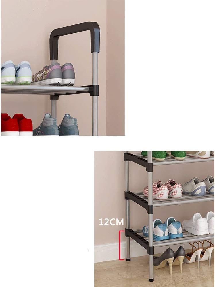 El gabinete para zapatos es fácil de ensamblar, no necesita herramientas especiales, simplemente inserte la tubería de acero en los conectores de plástico y agregue cada capa.